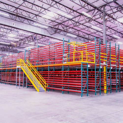 Ziglift has recently completed a project in Des Moines, IA. This project features a new Interlake Mecalux Selective pallet racking system, double-deep push-back racks for a temperature regulated room storing hazardous materials, fire suppression system, tunnels, mezzanines, guard rails, end-aisle protectors, column guards, and custom signage.